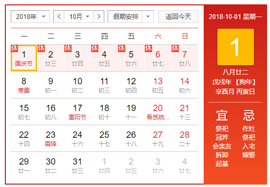太原網(wǎng)站建設(shè)航佳網(wǎng)絡(luò)根據(jù)2018年國(guó)家法定假期的規(guī)定,并結(jié)合公司實(shí)際情況,現(xiàn)對(duì)國(guó)慶節(jié)放假做如下安排:放假時(shí)間:10月1日(星期一)10月7日(國(guó)慶節(jié))公休放假共7天。10月8日正常上班。放假期間,網(wǎng)站如有問(wèn)題請(qǐng)撥打134-6681-1318,節(jié)假日外出人員請(qǐng)注意出行安全。預(yù)祝大家國(guó)慶節(jié)快樂(lè)!