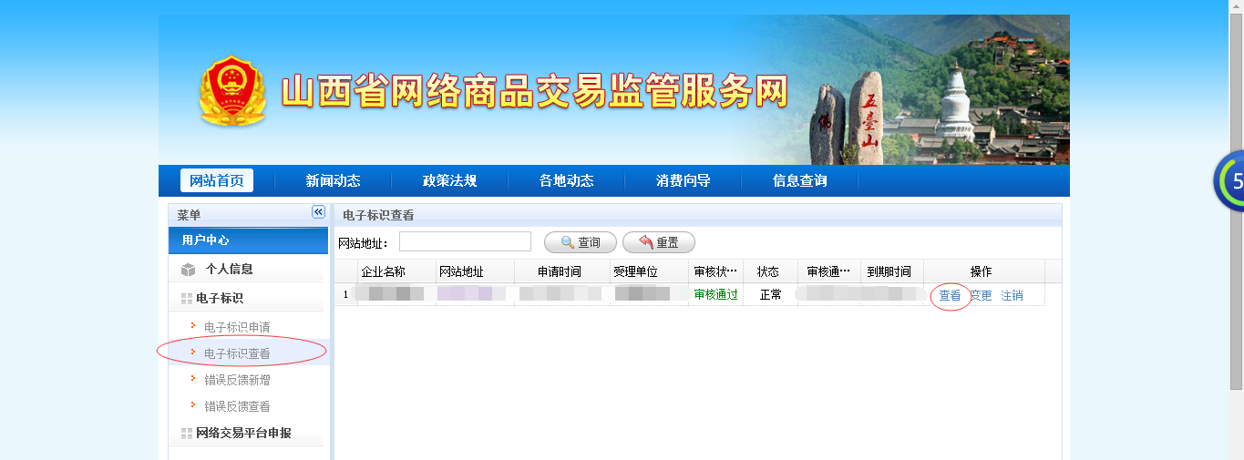 申請(qǐng)后可在山西省網(wǎng)絡(luò)商品監(jiān)管服務(wù)網(wǎng)電子標(biāo)識(shí)公告如下圖: